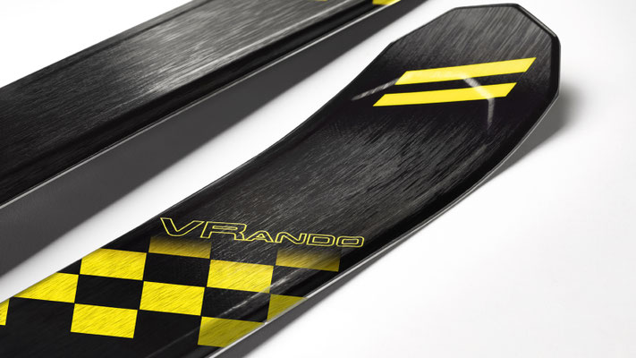 Inspiré par l'un des modèles phares de la marque dans les années 80 et 90, le VR27, ce nouveau design a été volontairement imaginé avec un traitement graphique en oblique pour rompre avec l'aspect longiligne du ski. Le travail autour du choix typographique des lettrages et de leur association avec la trame décorative, contribue également à renforcer l'identité visuelle du produit.